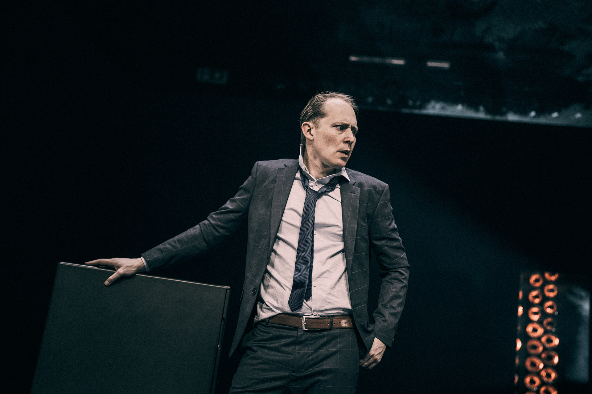 Forestillingsfoto fra Den Nationale Scenes teaterproduksjon En handelsreisendes død (2023).