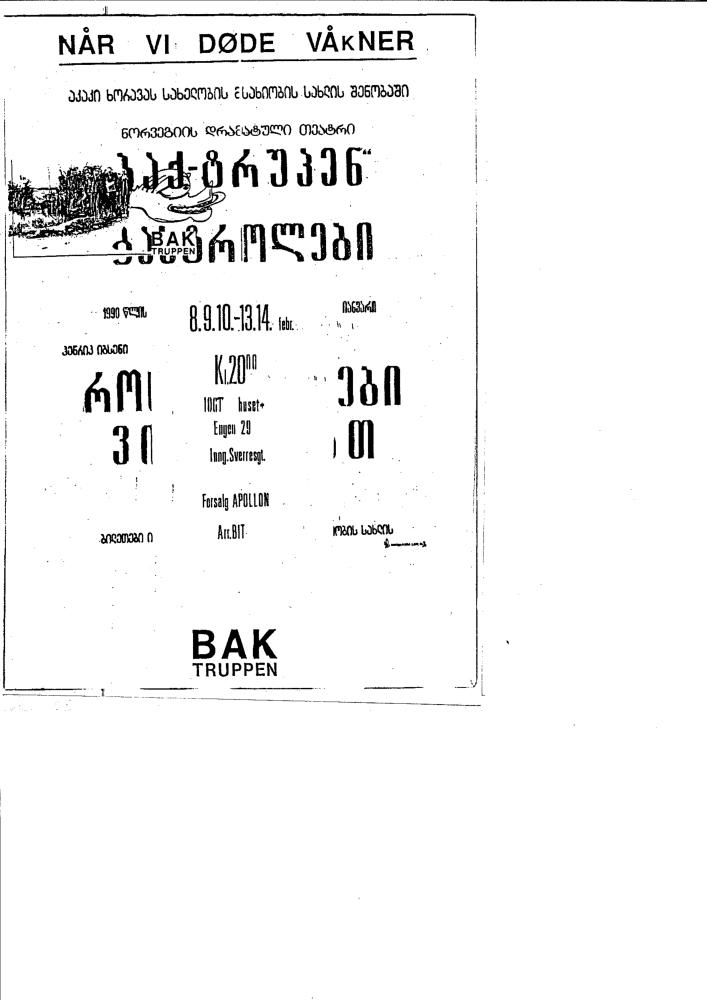 Flygeblad fra Baktruppens produksjon "Når vi døde våkner" (1990)