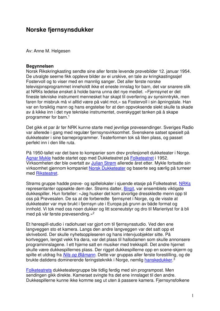 Norske fjernsynsdukker: Article in Norwegian about the history of NRK’s (Norwegian Broadcasting Corporation’s) television puppets.