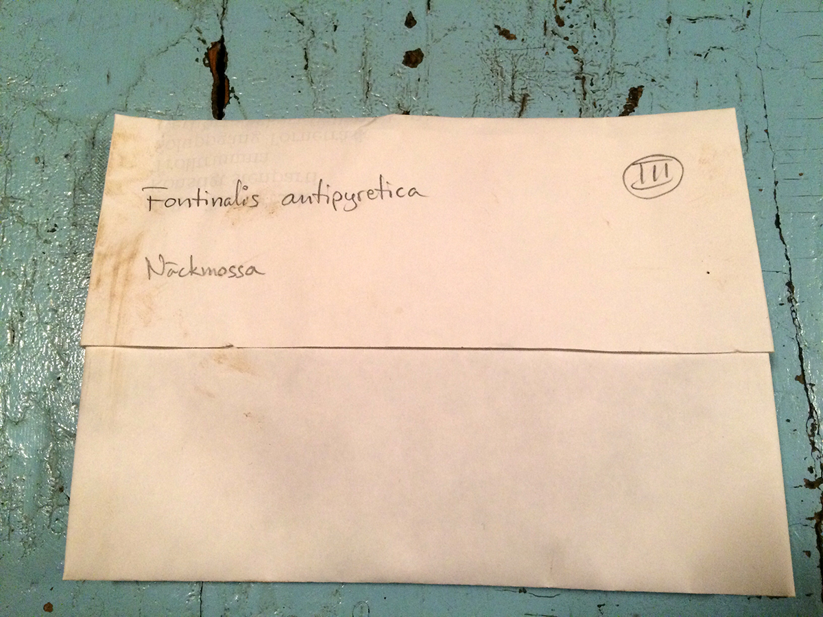 Fotografi av Ingvild Holms produksjon "Äppelmosse, Fjädermosse och Jean Francois Regnard" (2018)