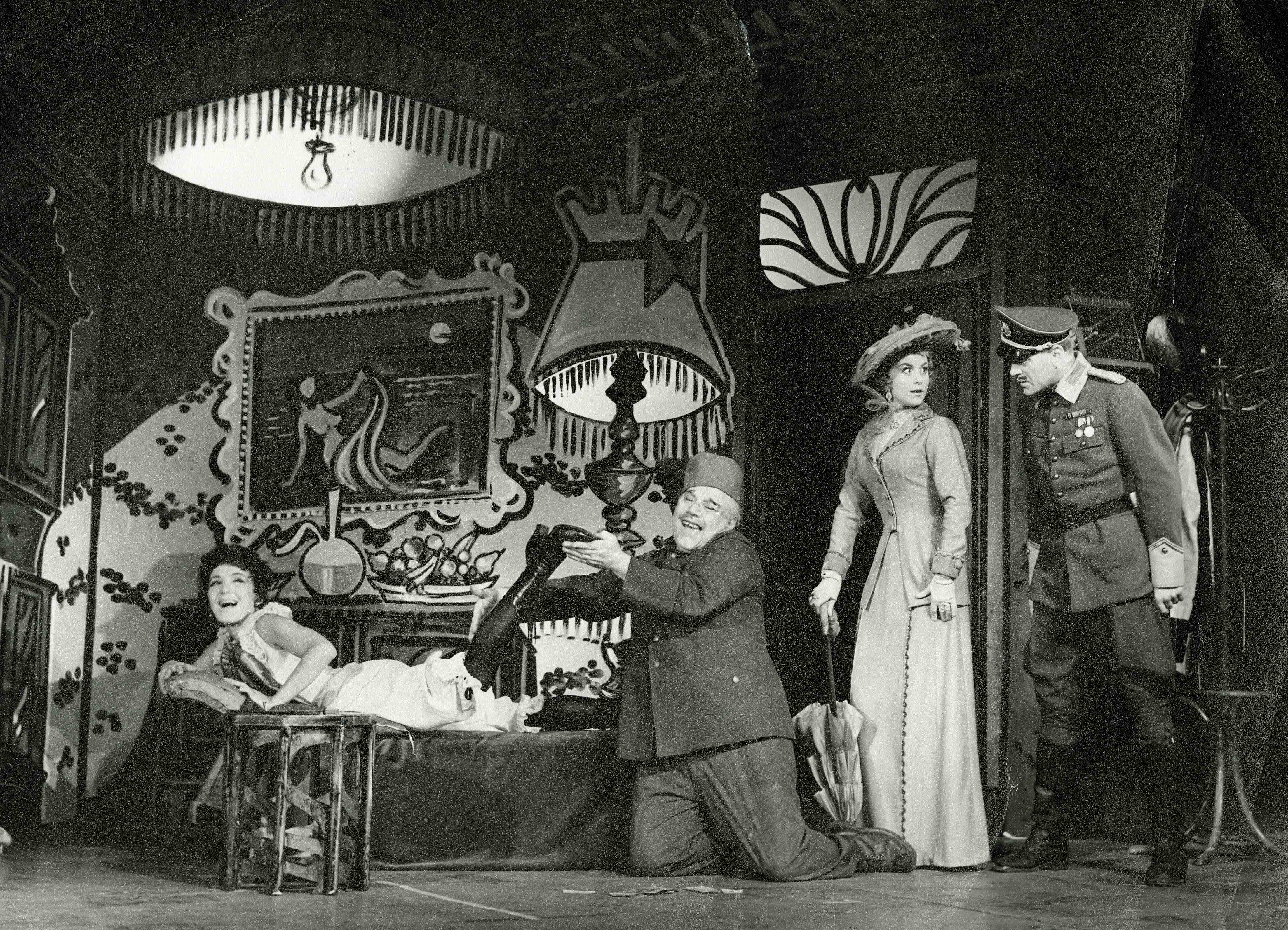 Fotografi fra Oslo Nye Teaters åpningsforestilling Soldat Svejk (1959).