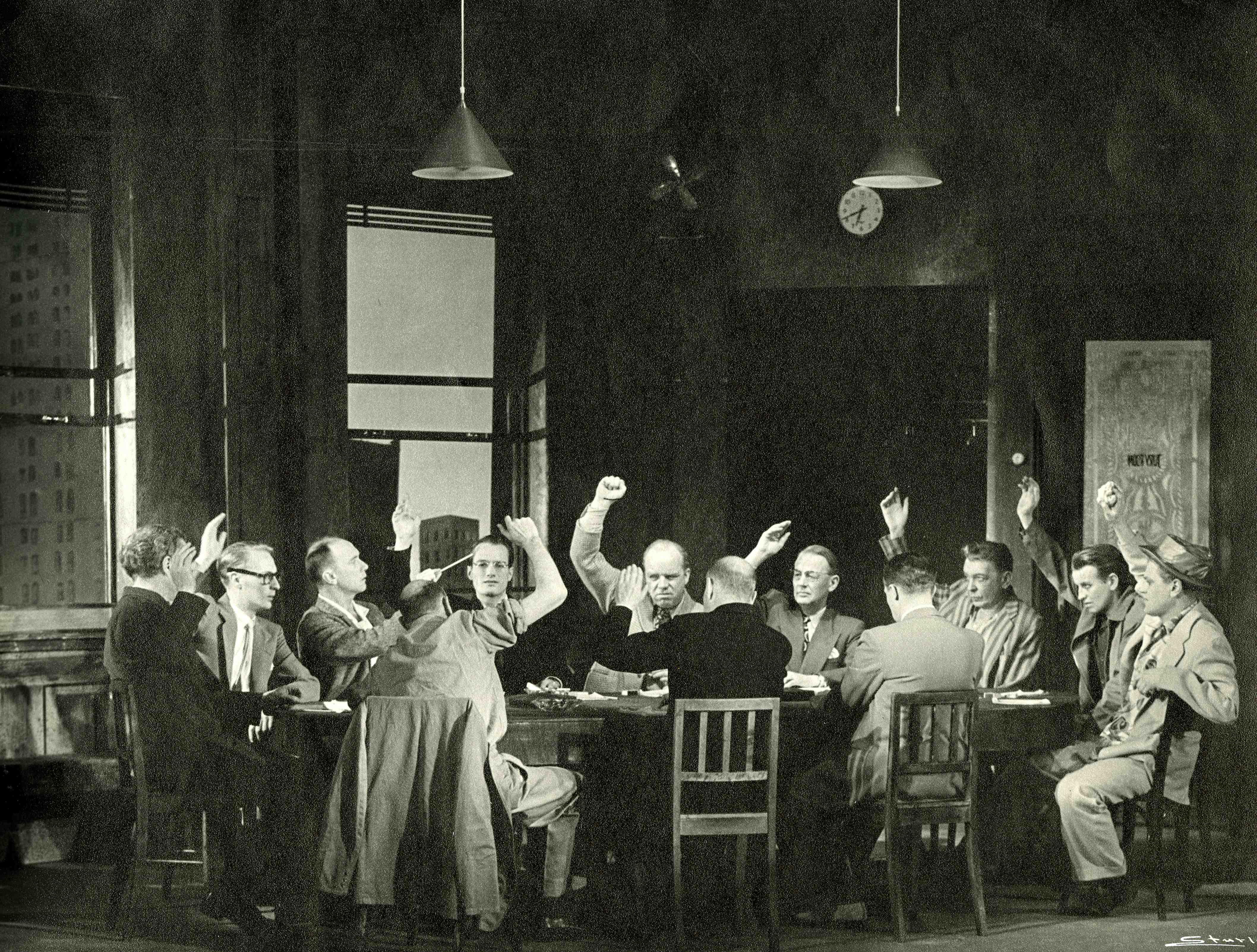Fotografi fra Det Nye Teaters produksjon 12 Edsvorne menn (1959)