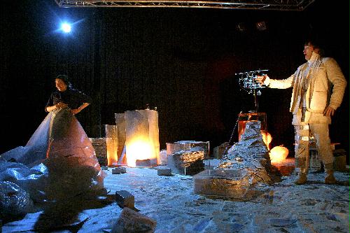 Fotografi fra Sagliocco Ensembles produksjon Den Lykkelige Prinsen (2004).