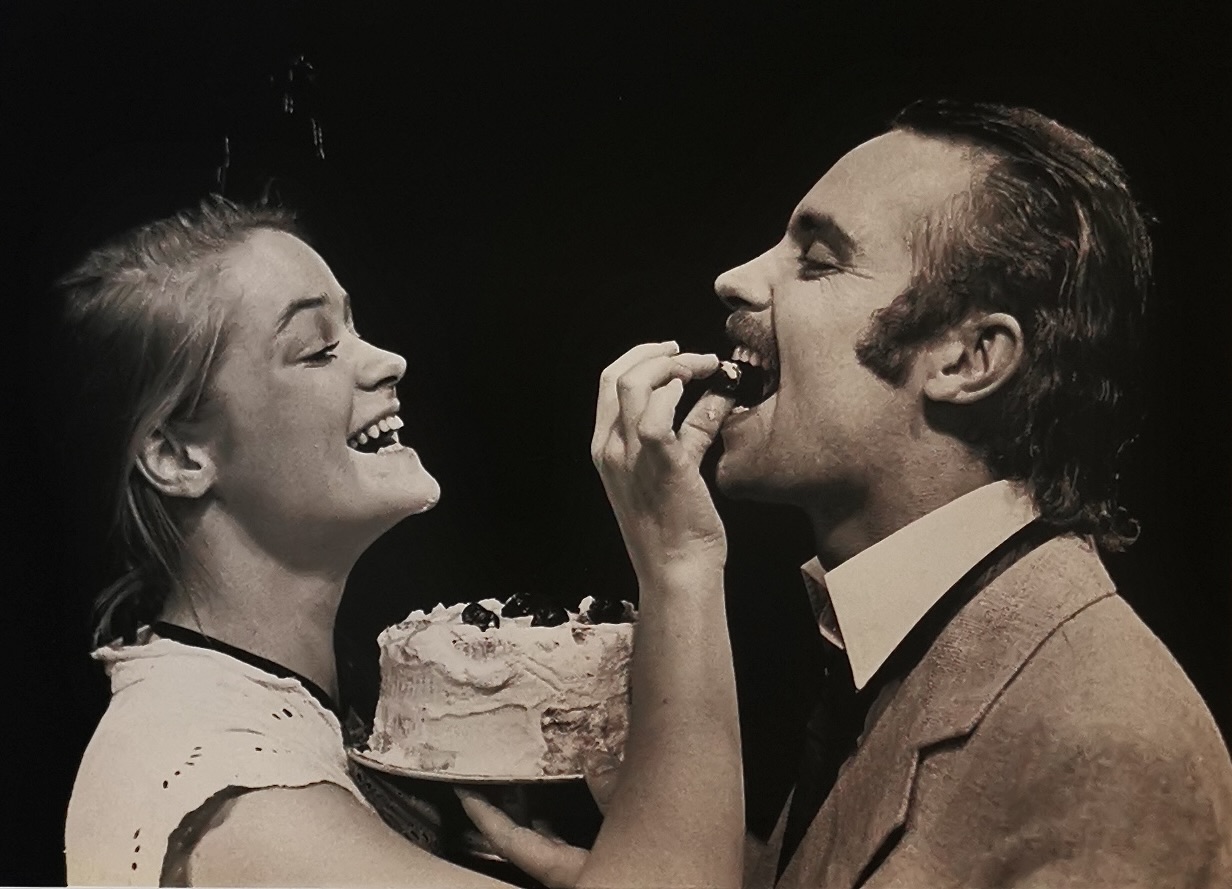 Fotografi fra Scene 7s produksjon Knall eller fall (Hvorfor han og hun heller vil hoppe til køys enn å delta i den tredje verdenskrig) (1980)