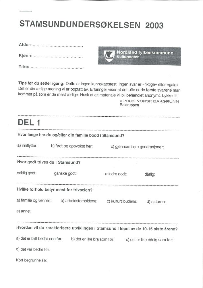Spørreskjema for Stamsundundersøkelsen
