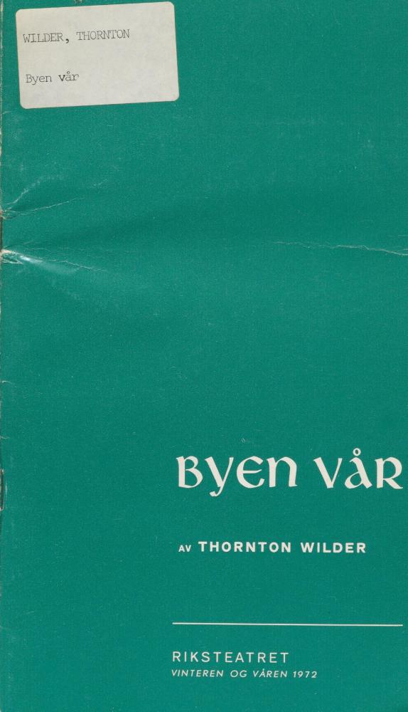 Forestillingsprogram til Riksteatrets produksjon Byen vår (1972).