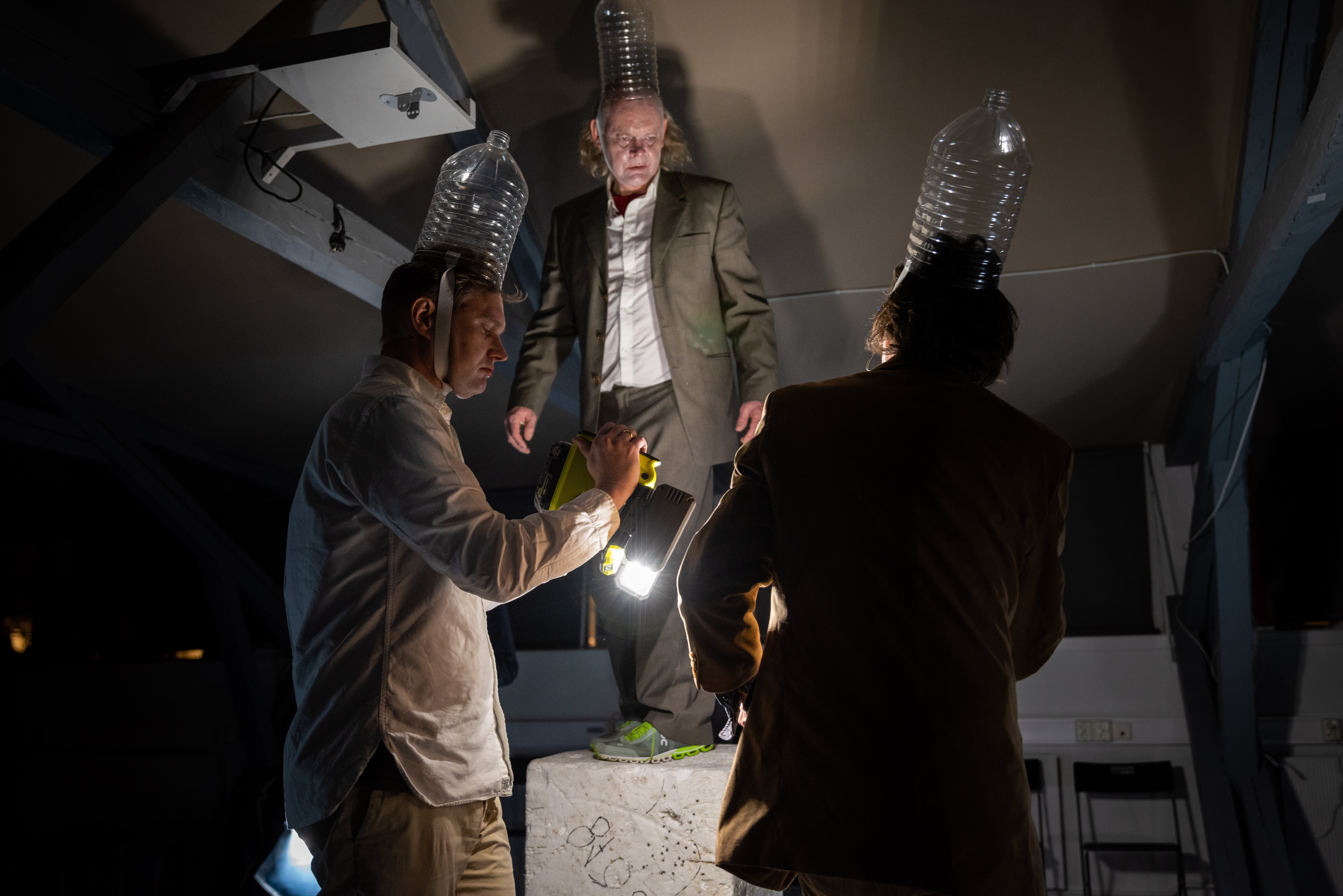 Fotografi fra Når Jeg Drikker (2023) av og med Martin Svedman, Per Bogstad Gulliksen, Bård Lie Thorbjørnsen og Bertil Greging.