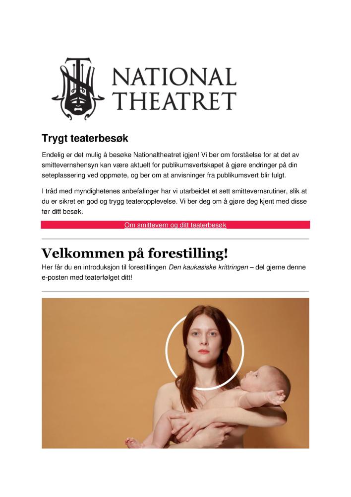 Forestillingsprogram til Nationaltheatrets produksjon Den kaukasiske krittringen (2020).