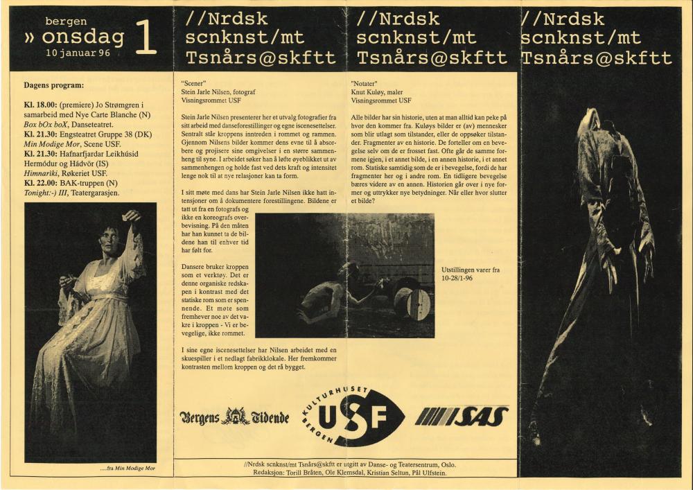 Dagsprogram for scenekunstfestivalen Nordisk Scenekunst mot Tusenårsskiftet (10. januar 1996)