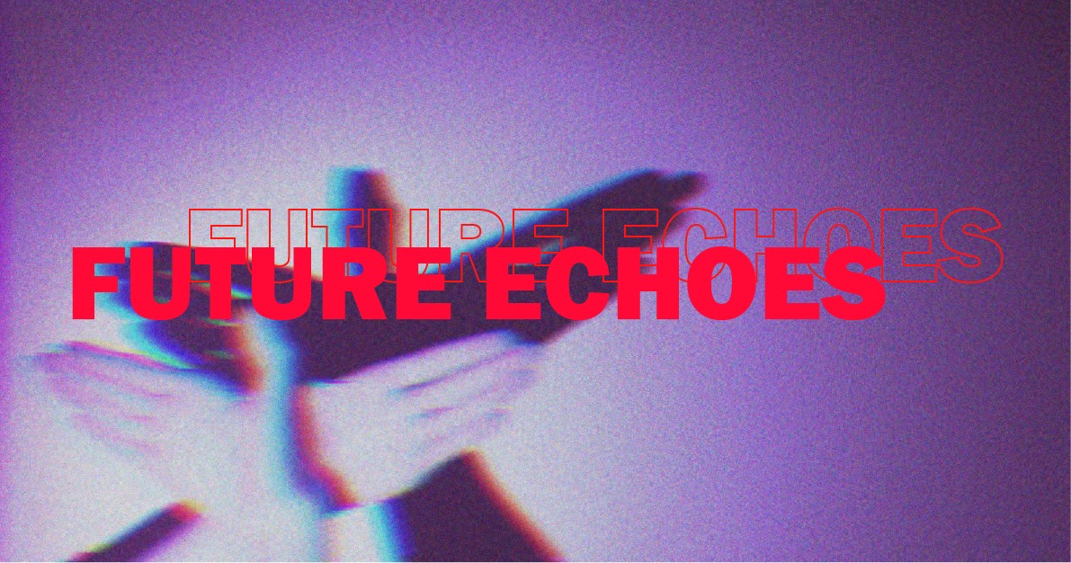 Plakat for FUTURE ECHOES (2024) av MA i scenografi, 1. år (MA i Scenography Production, 1. år) ved Norwegian Theatre Academy/Akademi for scenekunst, Høgskolen i Østfold.