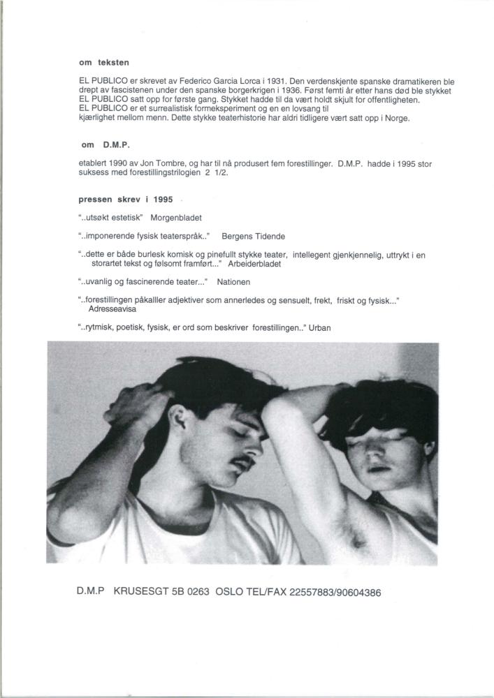Performance program for Det Motsatte Prosjekt's production "Julie - en forkledd ung mann"* ("Juliet - a young man in disguise", 1996)