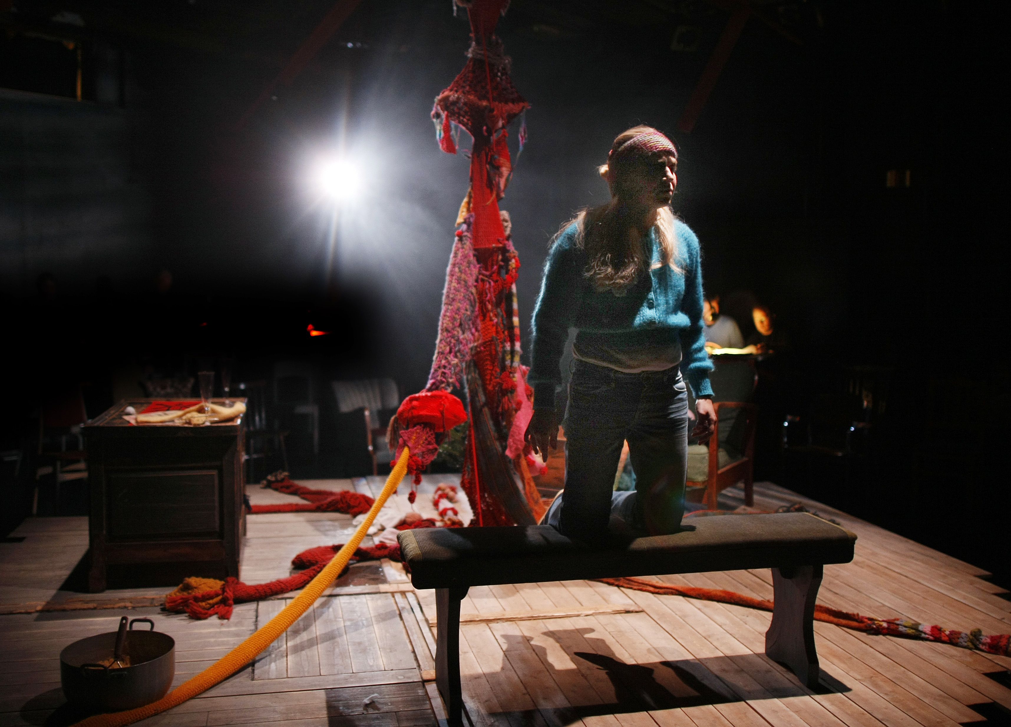 Photo from the Agder Theatre production Mother and me and men by Arne Lygre (directed by Jørn Riegels Wimpel). The photo shows Ann Ingrid Fuglestveit-Mortensen in her role.