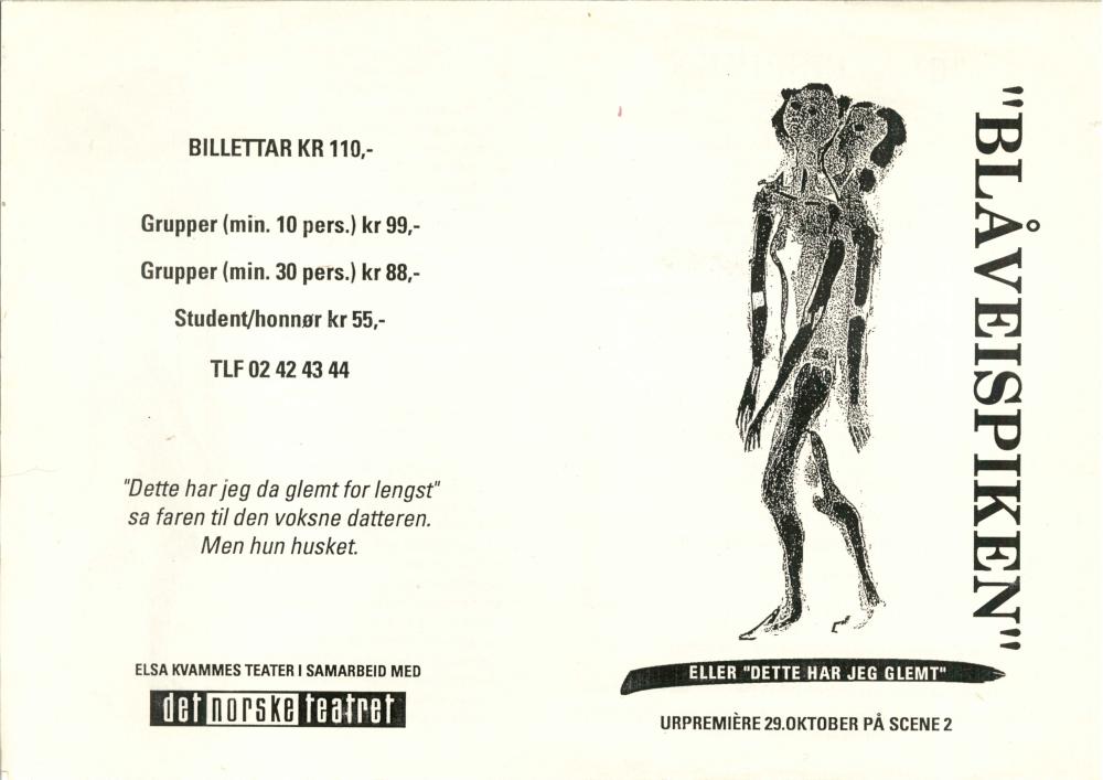 Program for Elsa Kvammes produksjon "Blåveispiken" (1992)