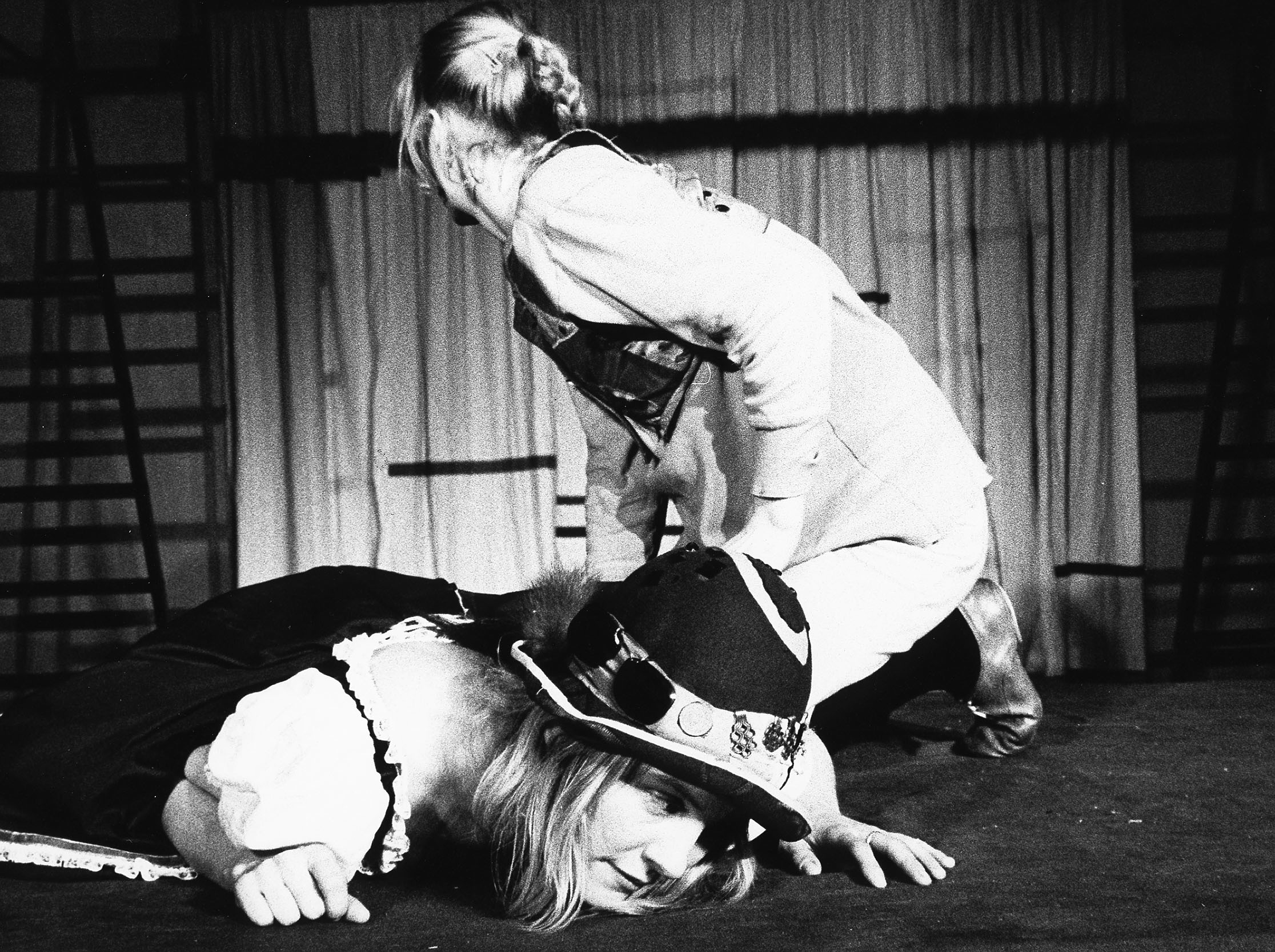 The Family. Photo from the Perleporten Teatergruppe production Se hva jeg tør* (See what I dare) (1981). In the photo: Siri Hagen (as the flea), Anitta Suikkari (as the fly). Photographer: Unknown.