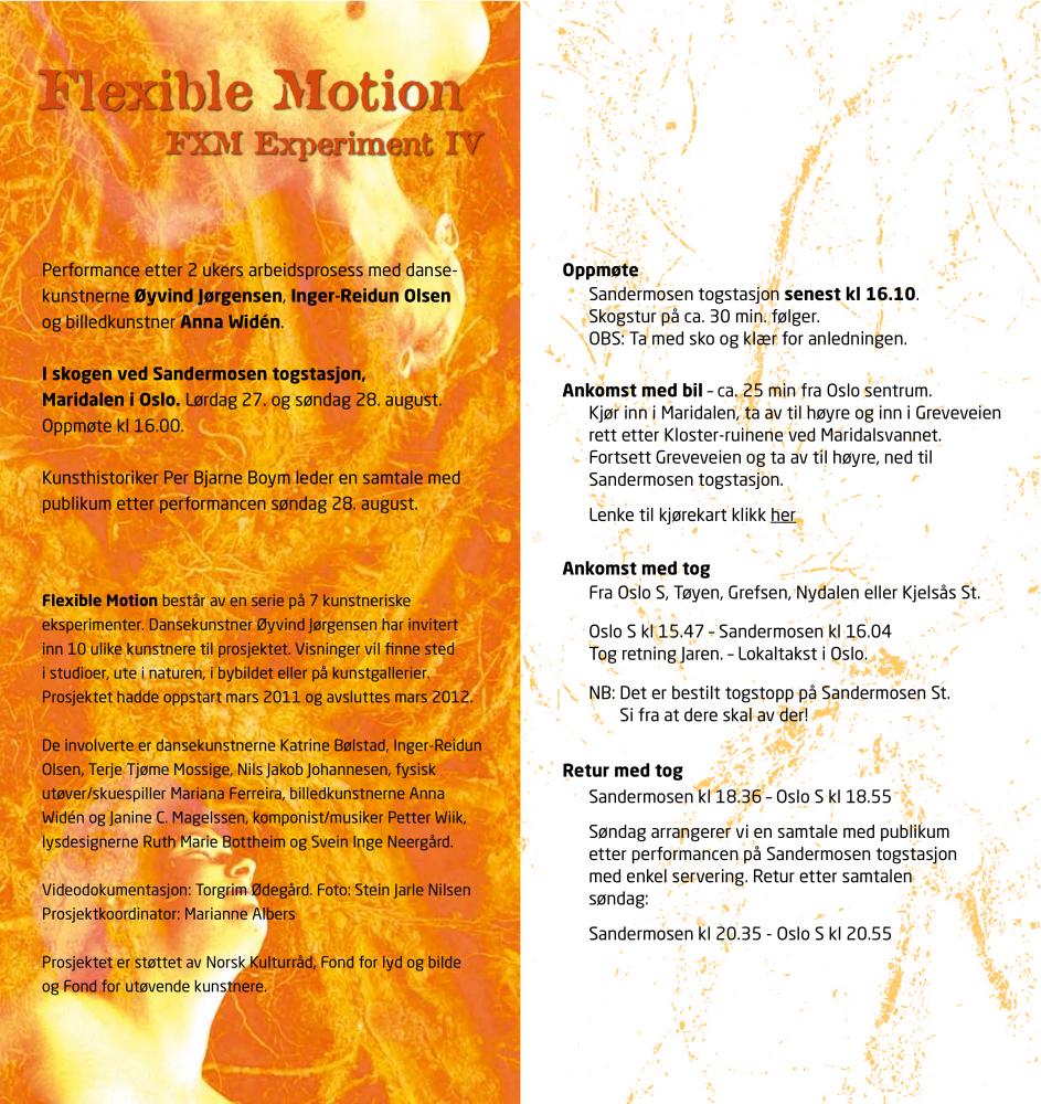 Flygeblad fra Øyvind Jørgensen Produksjoners produksjon "Flexible Motion IV" (2011)