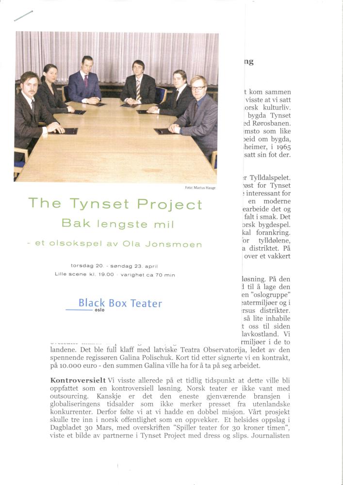 Program for The Tynset Projects produksjon "Bak lengste mil" (2006)