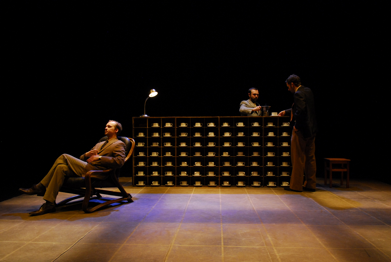 Photo from The Society by Jo Strømgren Kompani. In the photo:Bartek Obuchowicz Kaminski, John F. Brungot, Trond Fausa Aurvåg.Photographer: Knut Bry.