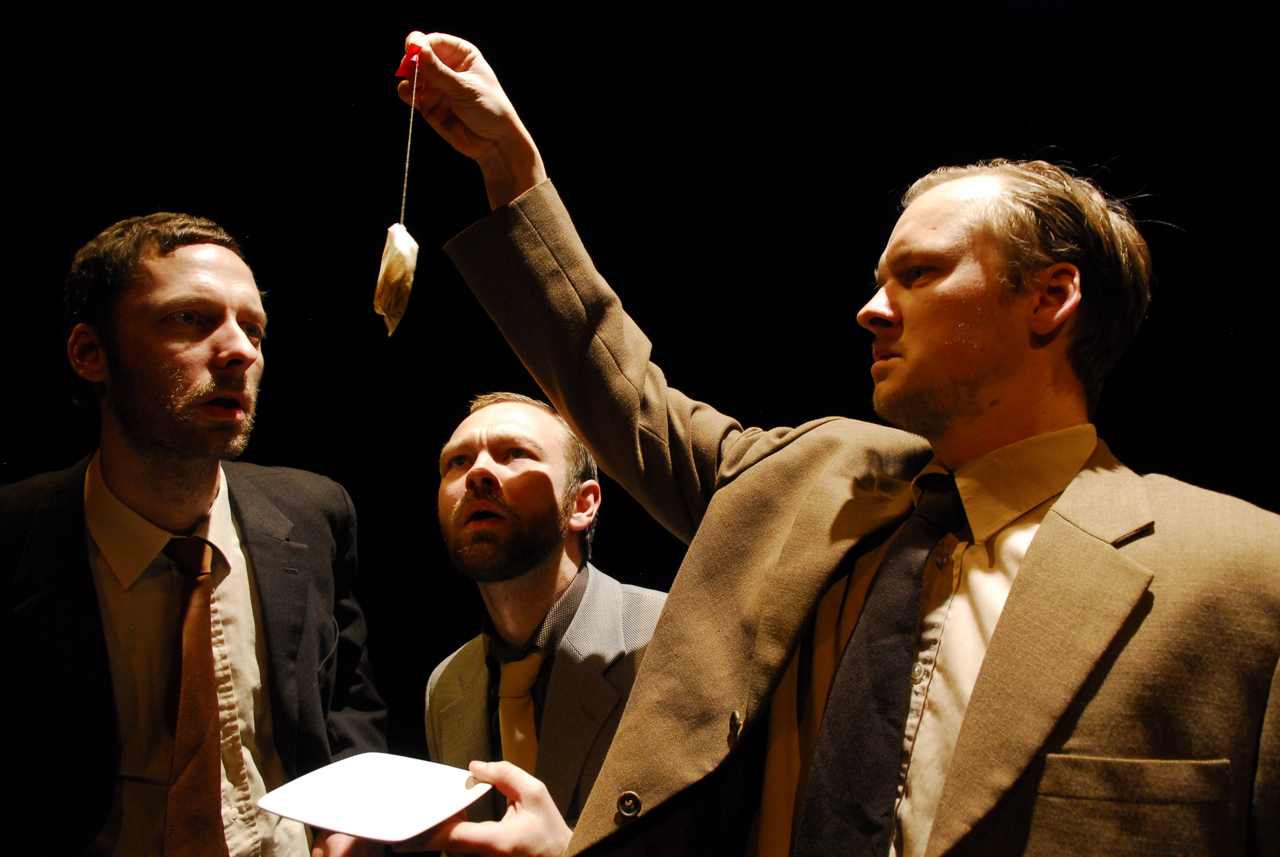 Photo from The Society by Jo Strømgren Kompani. In the photo:Trond Fausa Aurvåg, John F. Brungot, Bartek Obuchowicz Kaminski.Photographer: Knut Bry.