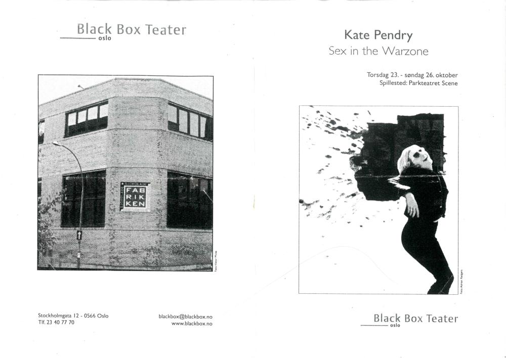 Forestillingsprogram for Kate Pendrys produksjon "Sex in the Warzone" (2003)