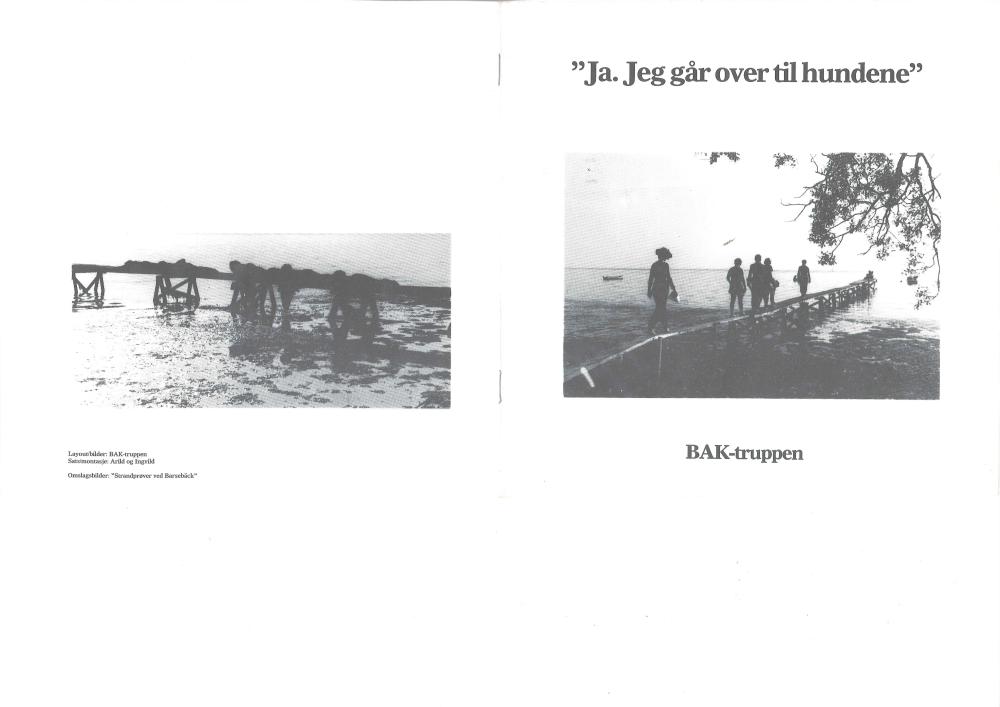 Program for Baktruppens produksjon "Ja. Jeg går over til hundene" (1987)