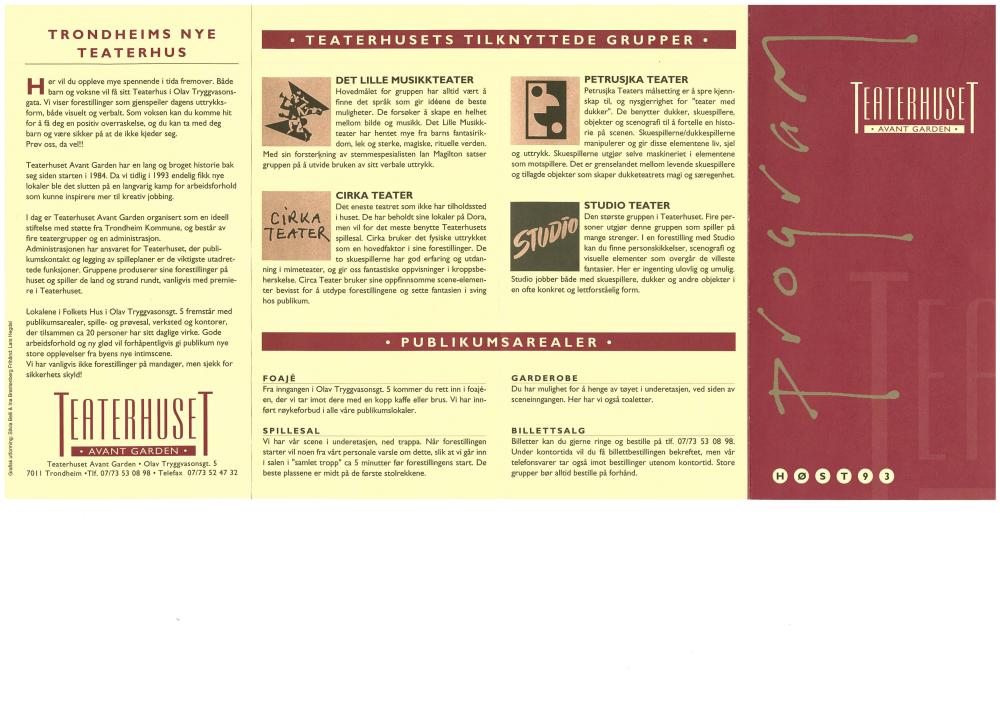 Sesongprogram for Teaterhuset Avant Garden høst 1993