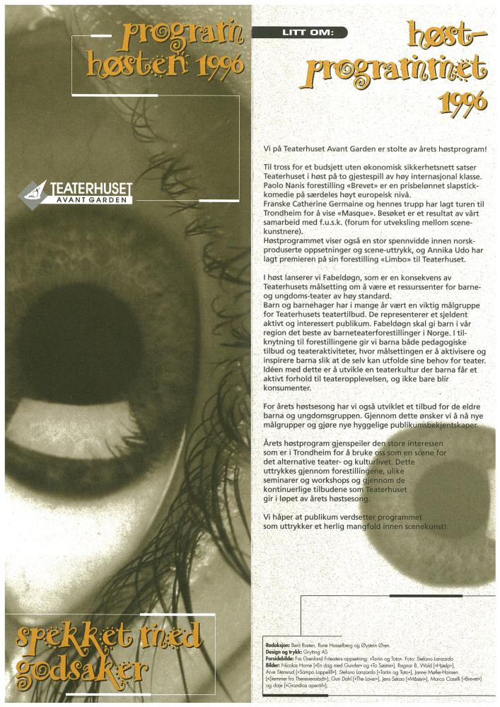Sesongprogram for Teaterhuset Avant Garden høst 1996