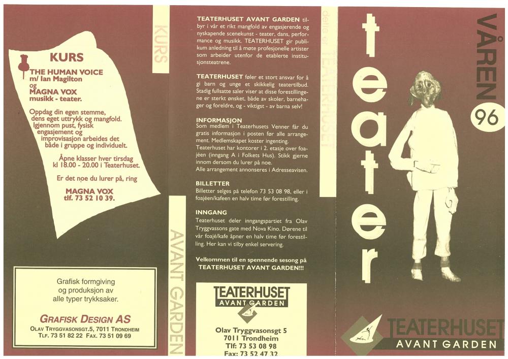 Sesongprogram for Teaterhuset Avant Garden vår 1996