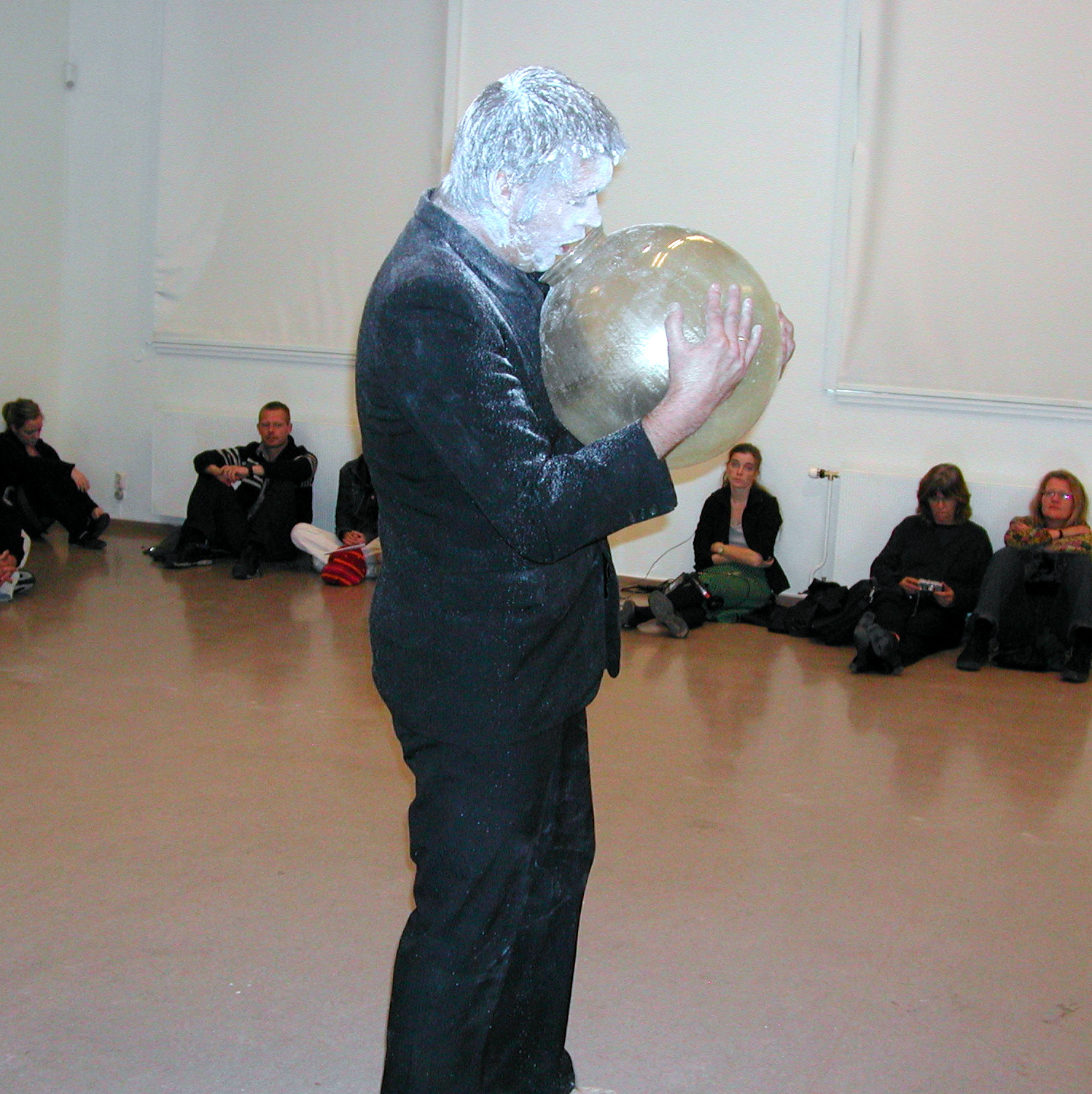 Photo from the performance of Fifht Speech during Kunstbanken's performance festival 12.10.2003.