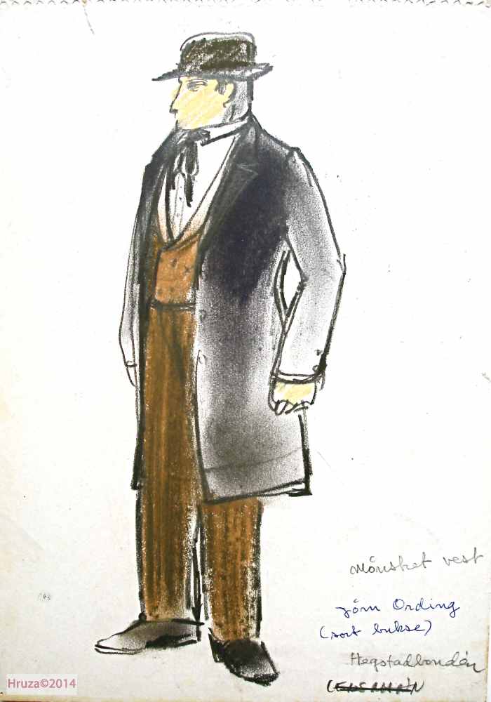 Costume drawing by Lubos Hruza for the actor Jørn Ording in the role of The Hægstad Farmer in the production of Peer Gynt, The National Theatre 1975.