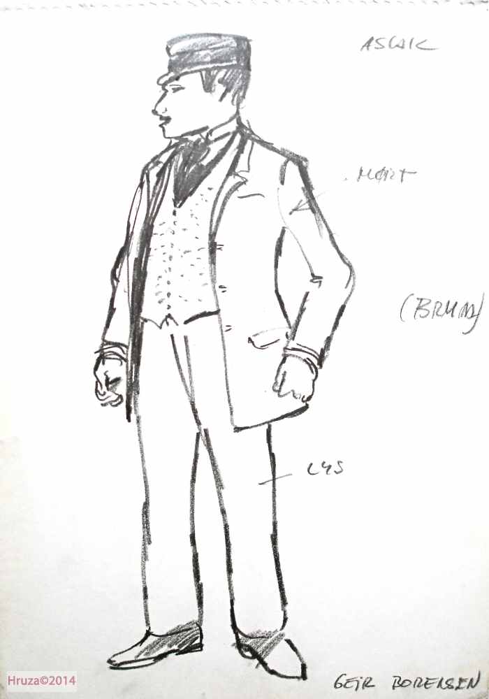 Costume drawing by Lubos Hruza for the actor Geir Børresen in the role of Aslak the Smith in the production of Peer Gynt, The National Theatre 1975.