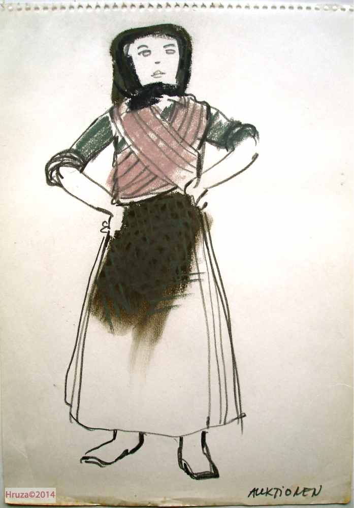 Costume drawing by Lubos Hruza for the production of Peer Gynt, The National Theatre 1975.