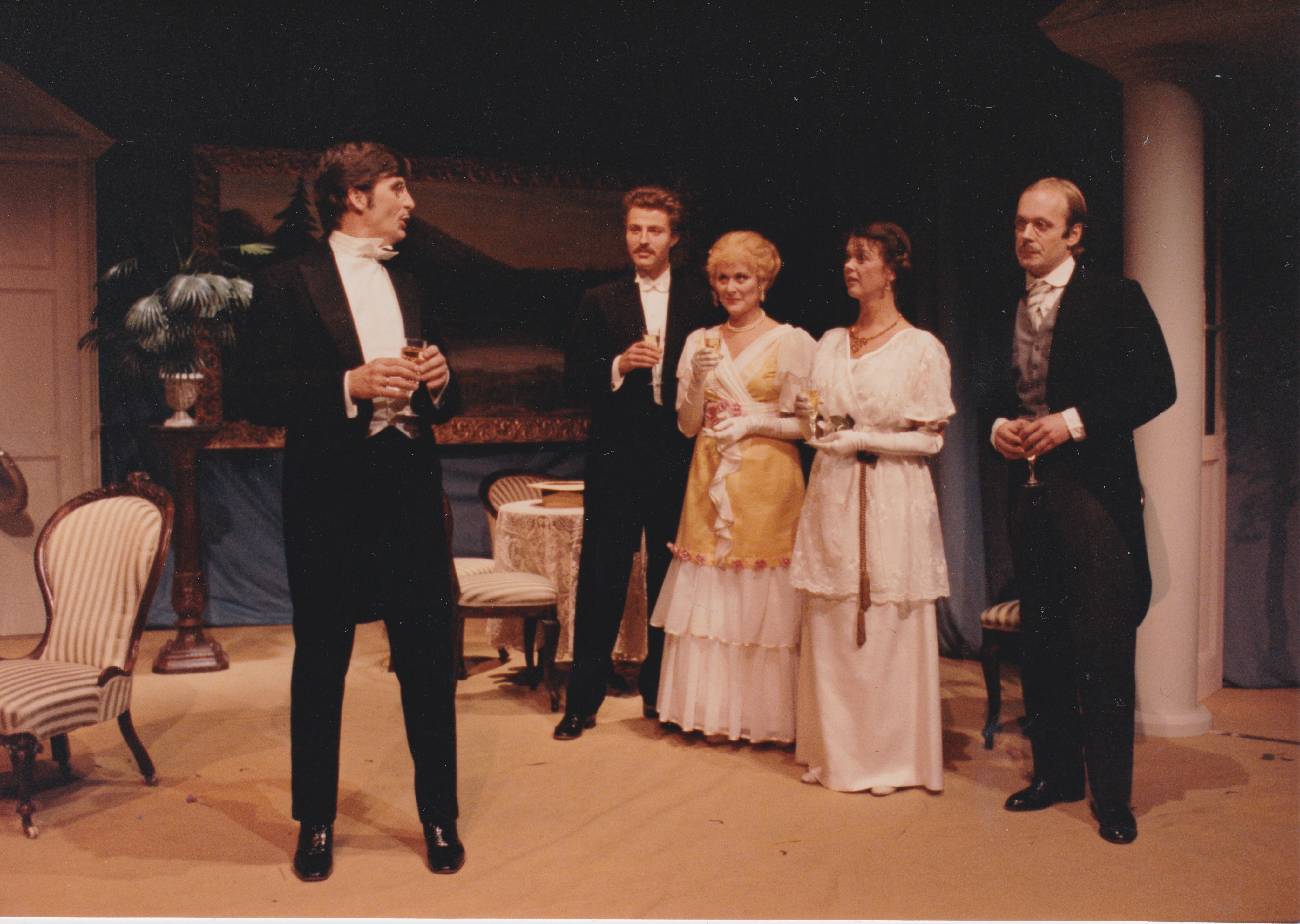 In the photo:The League of Youth, The Norwegian Touring Theatre 1982. Photo from Act 2 with Arne O. Reitan, Leif Blix Austad, Berit Kullander, Reidun Nortvedt and Jan Grønli.