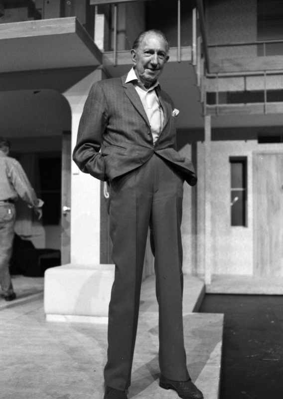 A scene from the Norwegian National Theatre’s production of av Alan Ayckbourn’s "A Small Family Business". Close-up of character Ken Ayres, standing with his hands in his pockets. The production was premiered on 8 September 1989. The director was Toralv Maurstad, and the cast included Tor Stokke as Jack, Kari Simonsen as Poppy and Leif Juster as Ken Ayres.