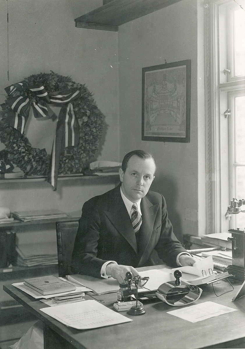 Photo of Henry Gleditsch in his office at Trøndelag Theatre