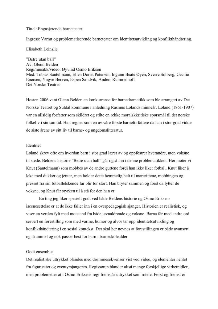 Anmeldelse av Elisabeth Leinslie i Dagsavisen av Det Norske Teatrets produksjon "Betre utan ball" (2007)