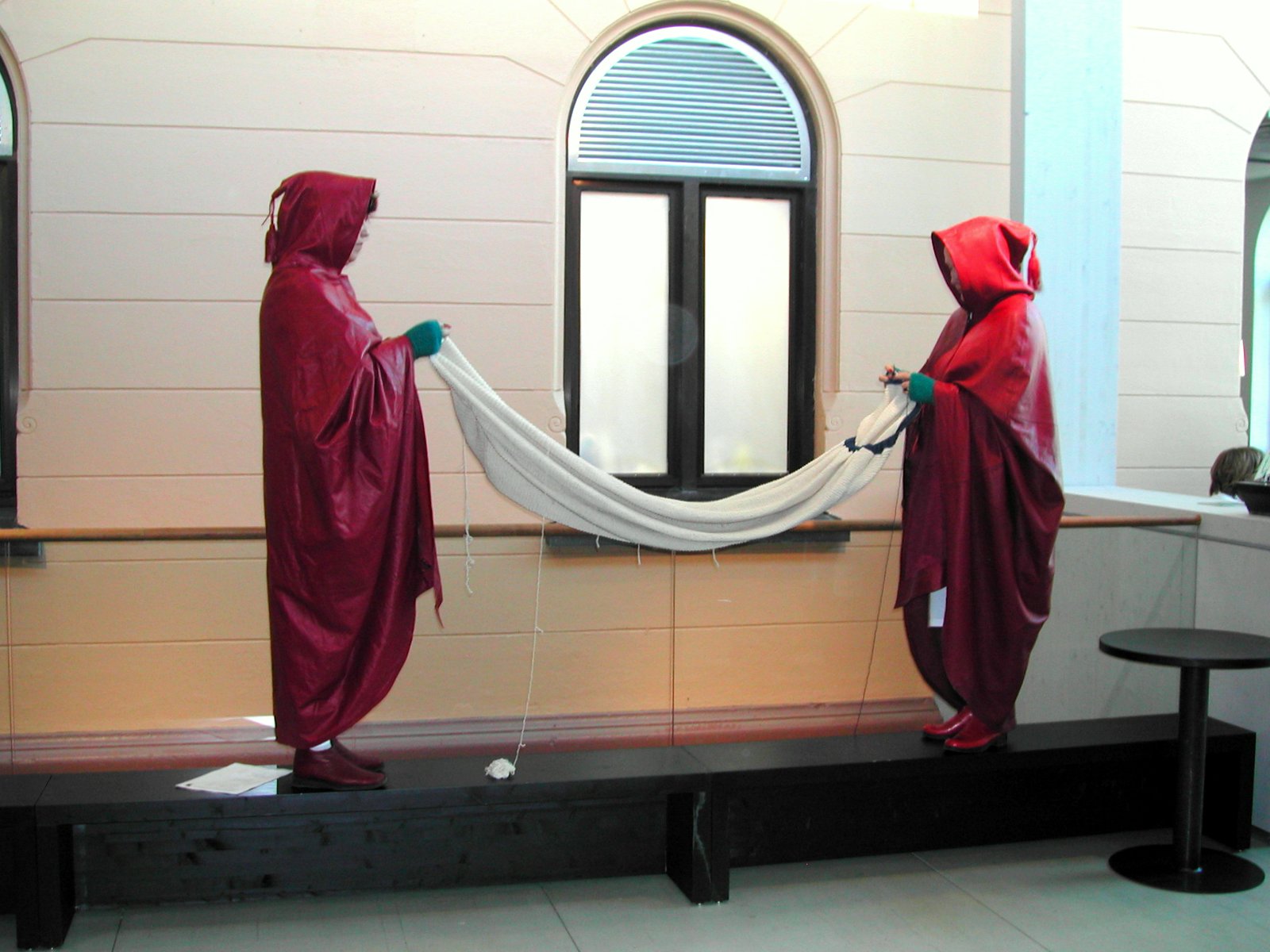 Foto fra performancen "Strikk 3" (2003) av Liv Reidun Brakstad