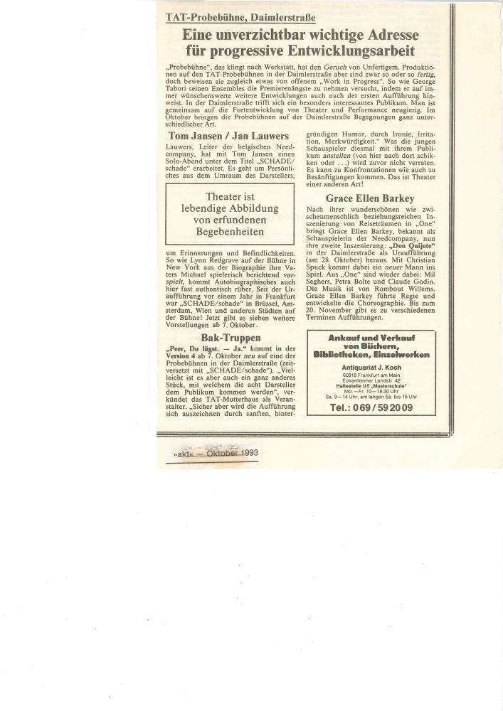 Forhåndsomtale i AKT om Baktruppens produksjon "Peer, du lügst. Ja!/Peer, du lyver. Ja!/Peer, you're lying. Yes!" (1993)