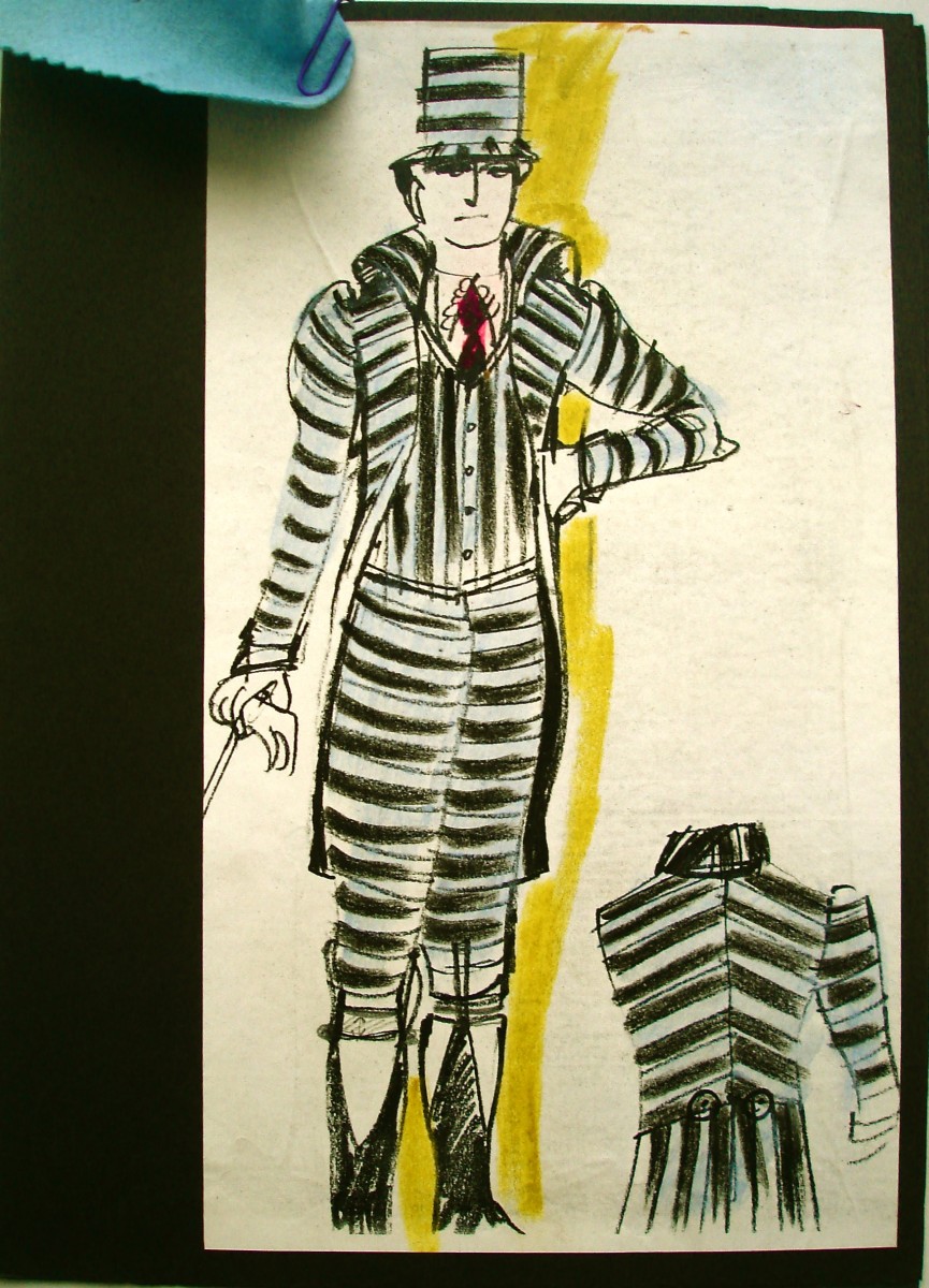 Kostymetegning av Lubos Hruza fra Don Pasqual, 1976, Den Norske Opera og Ballett