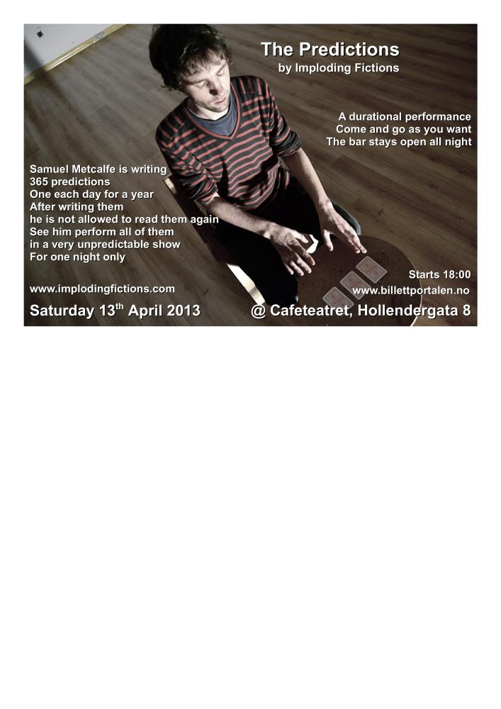 Flygeblad fra Imploding Fictions produksjon The Predictions (2013).