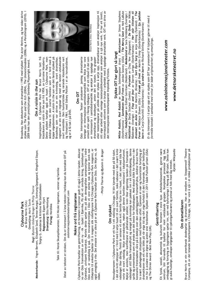 Program for Oslo Internasjonale Teaters lesning Clybourne Park (2012)