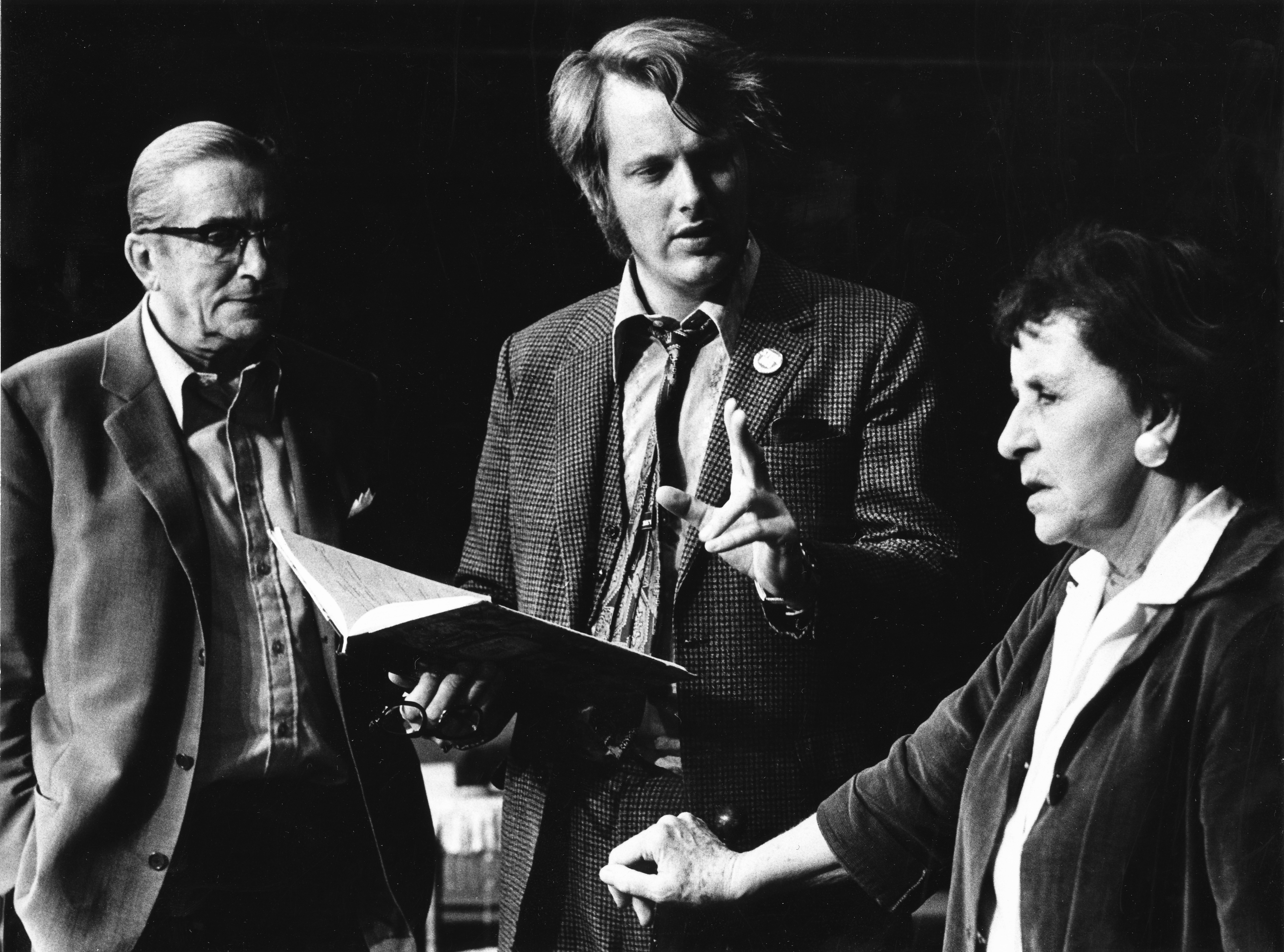 Fotografi fra prøvene til Nationaltheatrets produksjon Spøksonaten (1972)