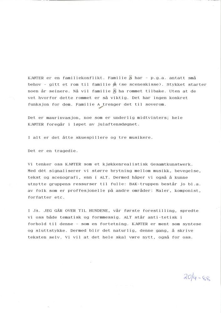 Informasjonsark om Baktruppens produksjon "Kjøter" (1989)