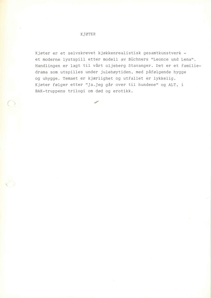 Informasjonsark om Baktruppens produksjon "Kjøter" (1989)