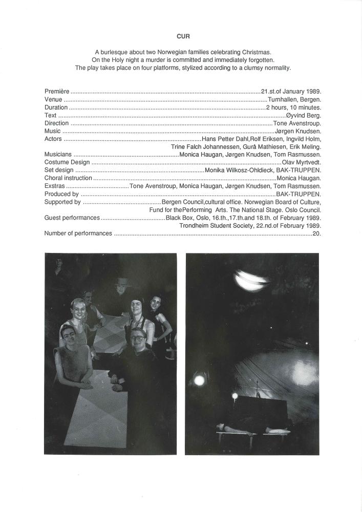 Informasjonsark om Baktruppens produksjon "Kjøter" (1989)