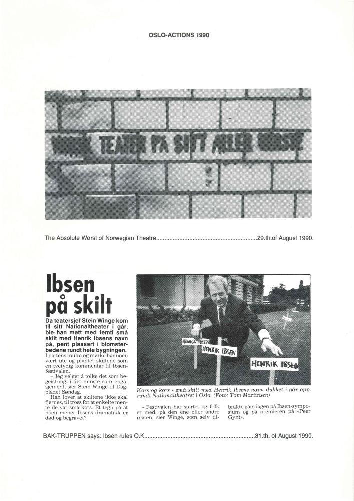 Informasjonsark Baktruppens Oslo-aksjoner 1990