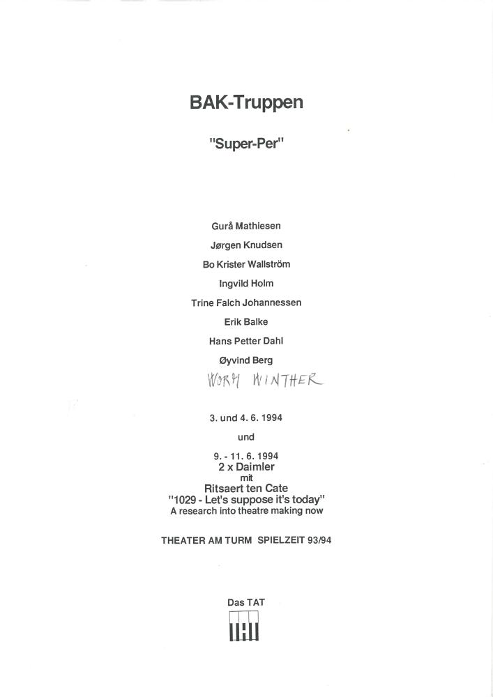 Flyer av Baktruppens produksjon "Super-Per" (1994)