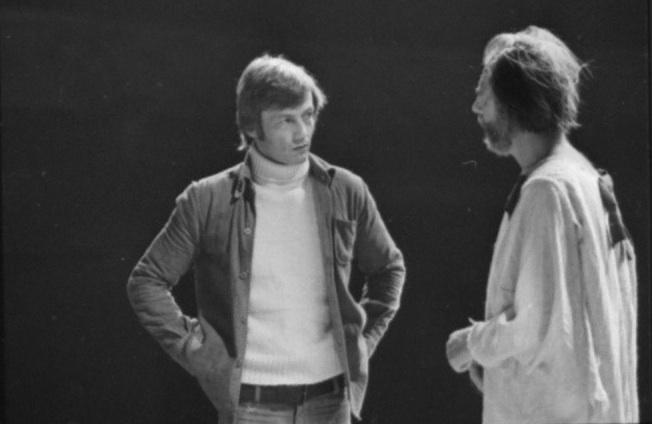 Fotografi av prøvene til Nationaltheatrets produksjon Bakkantinnene. (1973)