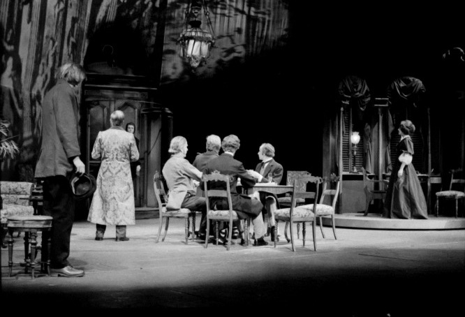 Fotografi av Nationaltheatrets produksjon De besatte (1975)