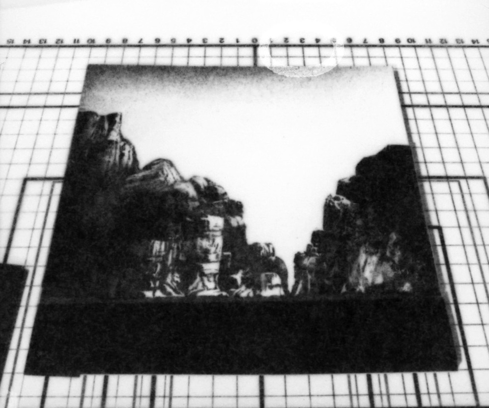 Fotografi av projeksjon til scenografien til Nationaltheatrets produksjon Fruen fra Havet (1977)