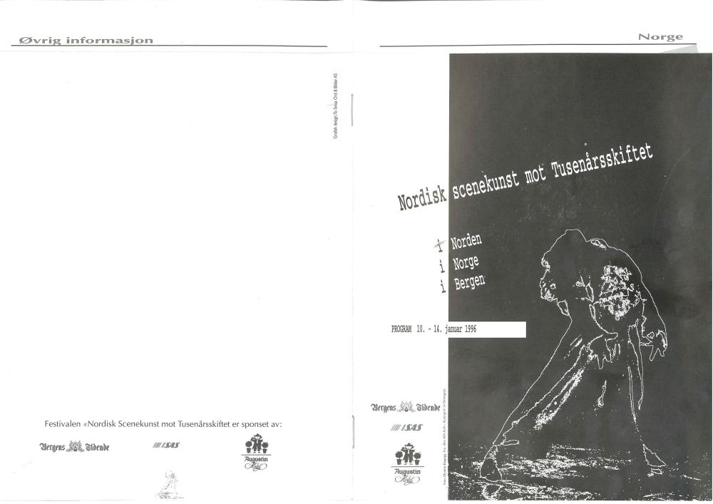 Festivalprogram for scenekunstfestivalen Nordisk Scenekunst mot Tusenårsskiftet (1996).